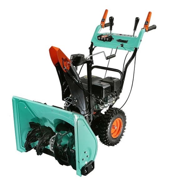 - Агрессивные шнеки диаметром 250 мм легко справляются со слежавшимся снегом и настом.